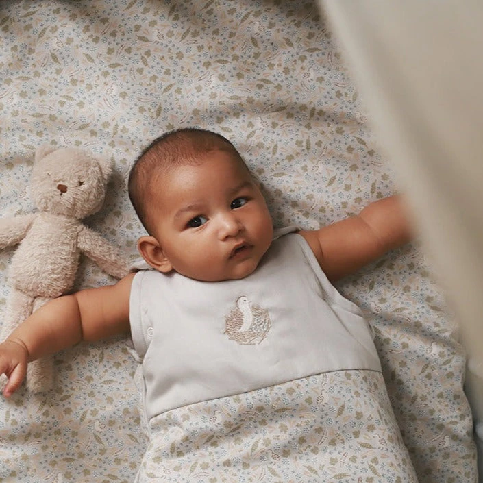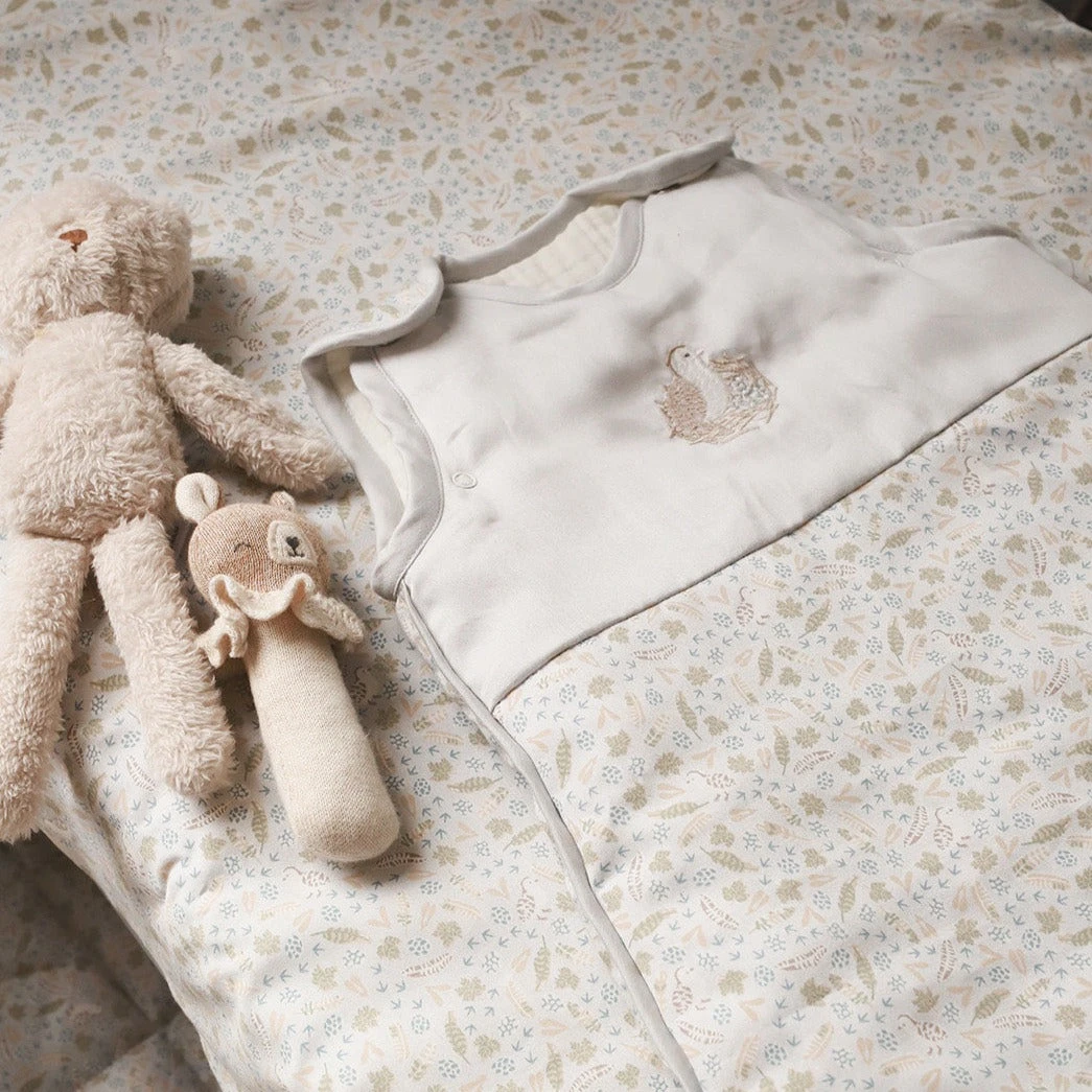 Introducing our snug organic cotton sleeping bag, crafted to keep your little one warm and cuddled throughout the night. Made from organic cotton with a gentle muslin lining, this enchanting sleeping bag is part of our Nature Trail collection, showcasing a delightful nesting quail on the front for a touch of whimsy. Ensure your baby sleeps in both comfort and style.