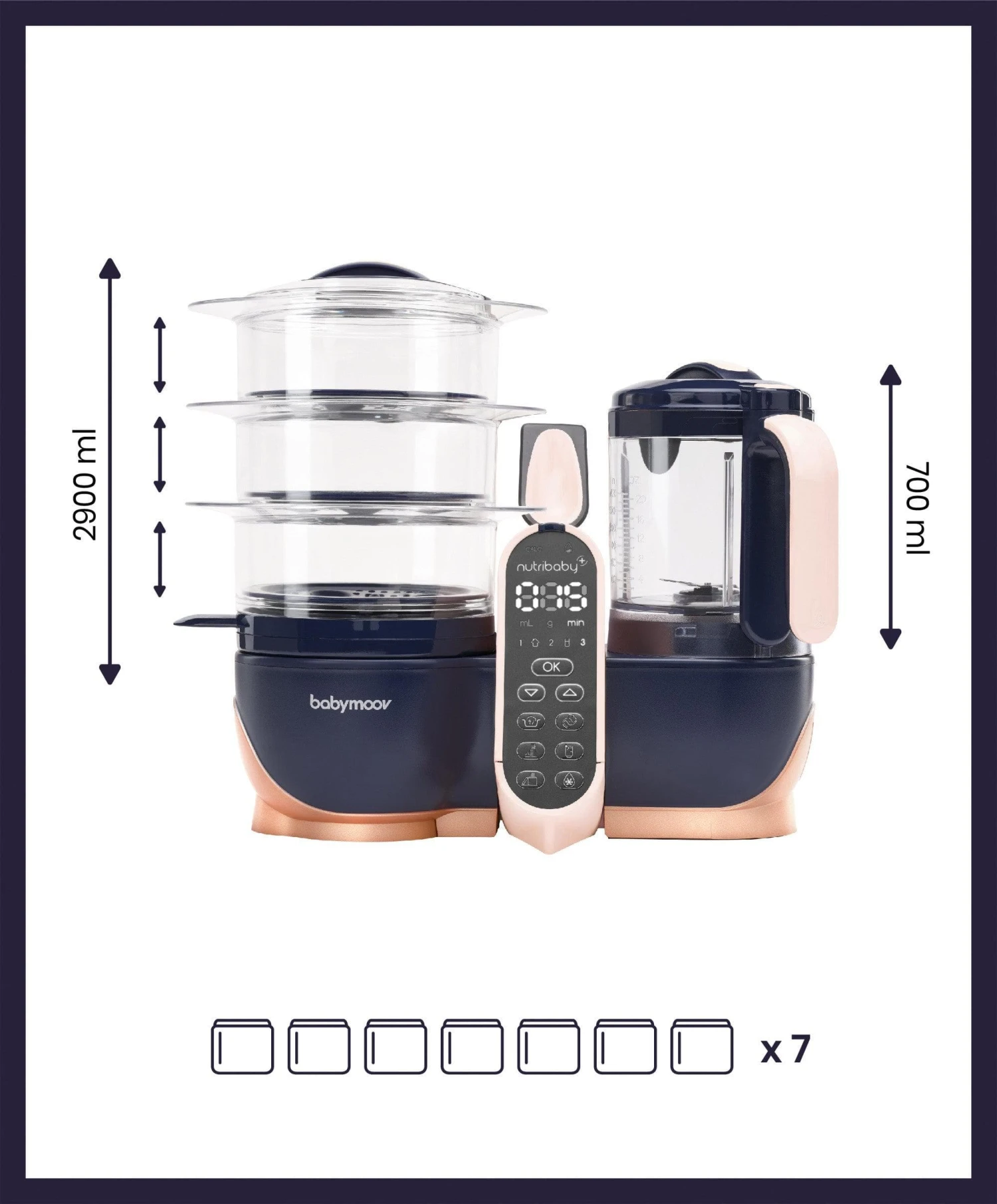 - Extra-large capacity: 2.9 litres in total (2,200ml for cooking and 700ml for blending), up to 14 meals can be prepared for baby all at once