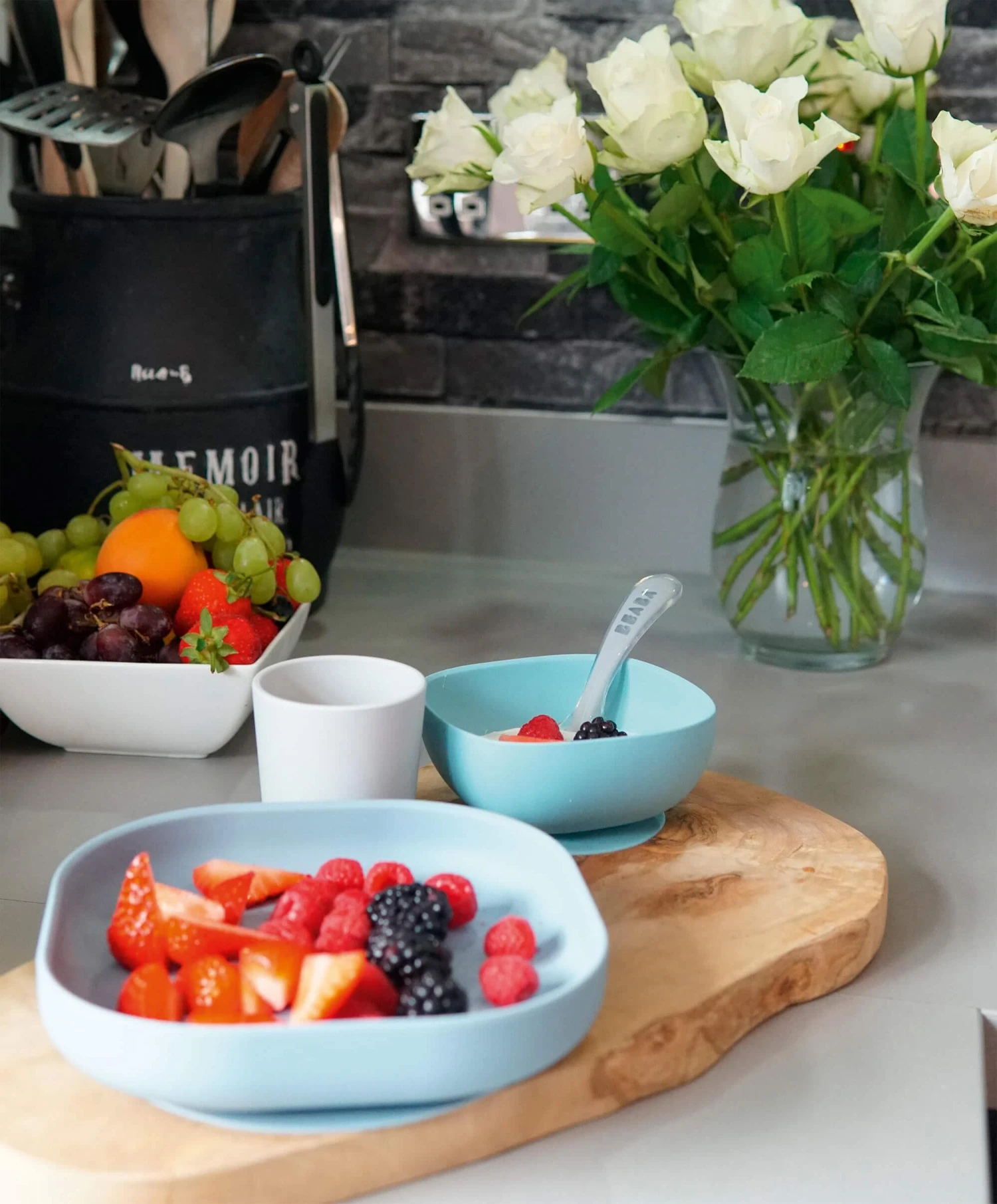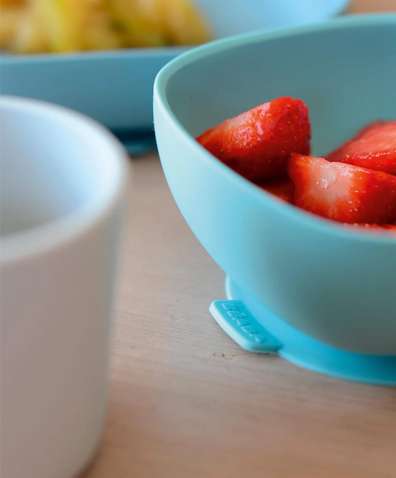 Everything baby needs in one set. The Silicone Meal Set by BÉABA® has been specially developed to help guide the scooping of food. Suction base to avoid accidents and a second stage silicone spoon designed for little hands.