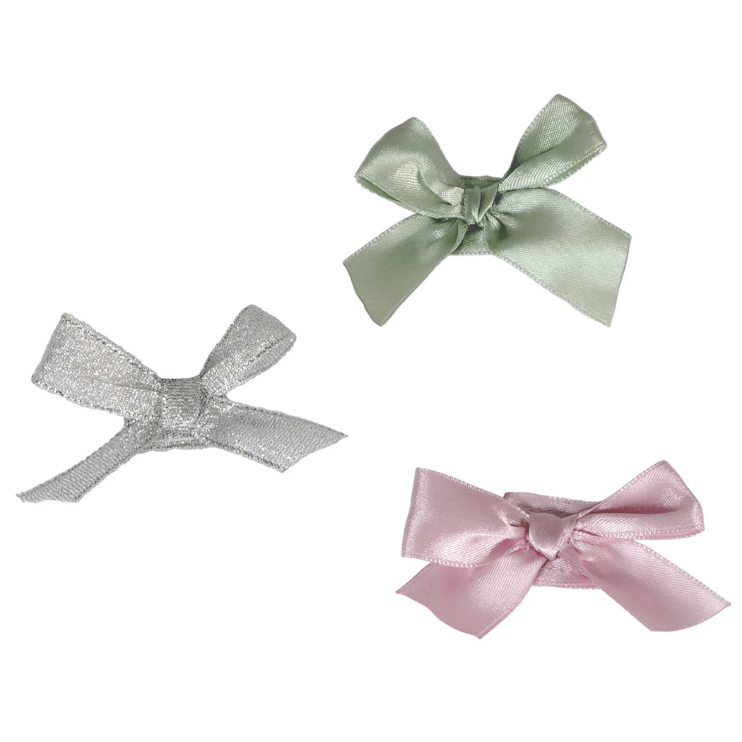 - Includes 3 interchangeable bows in silver, dusty rose, and dusty green.
