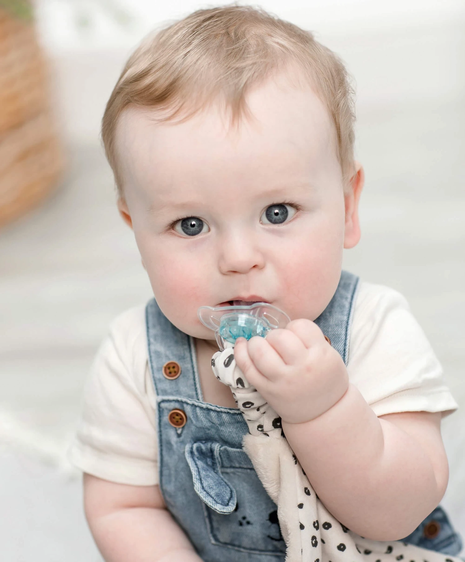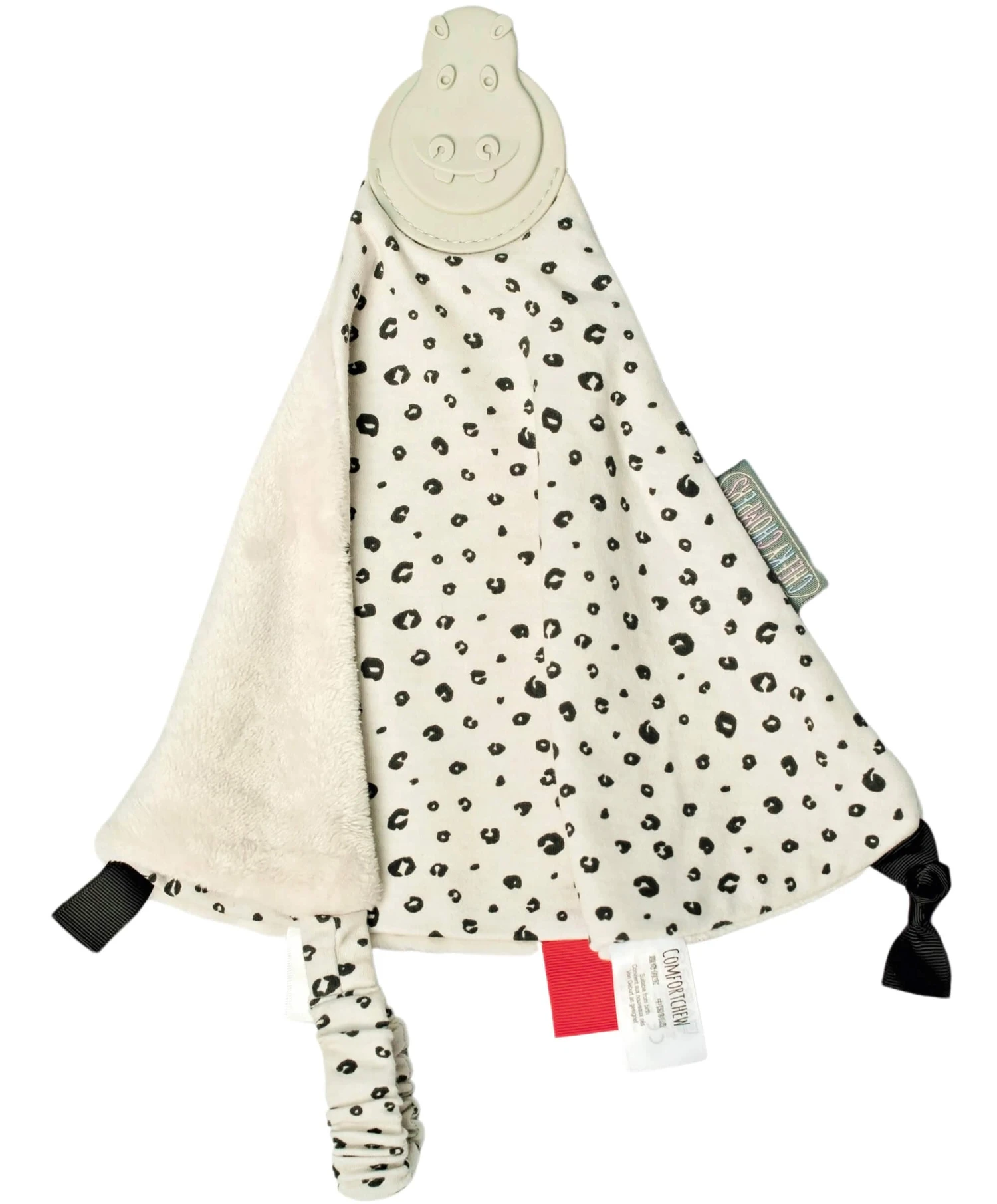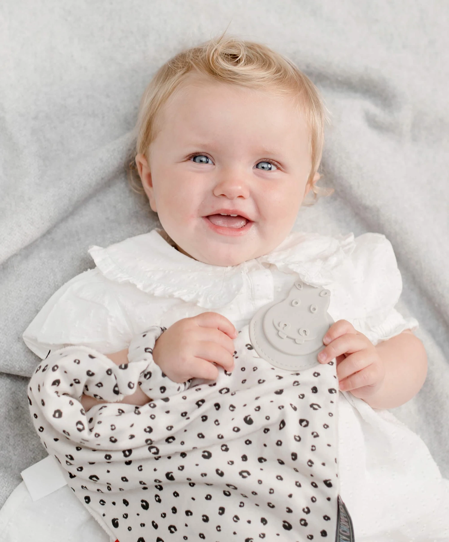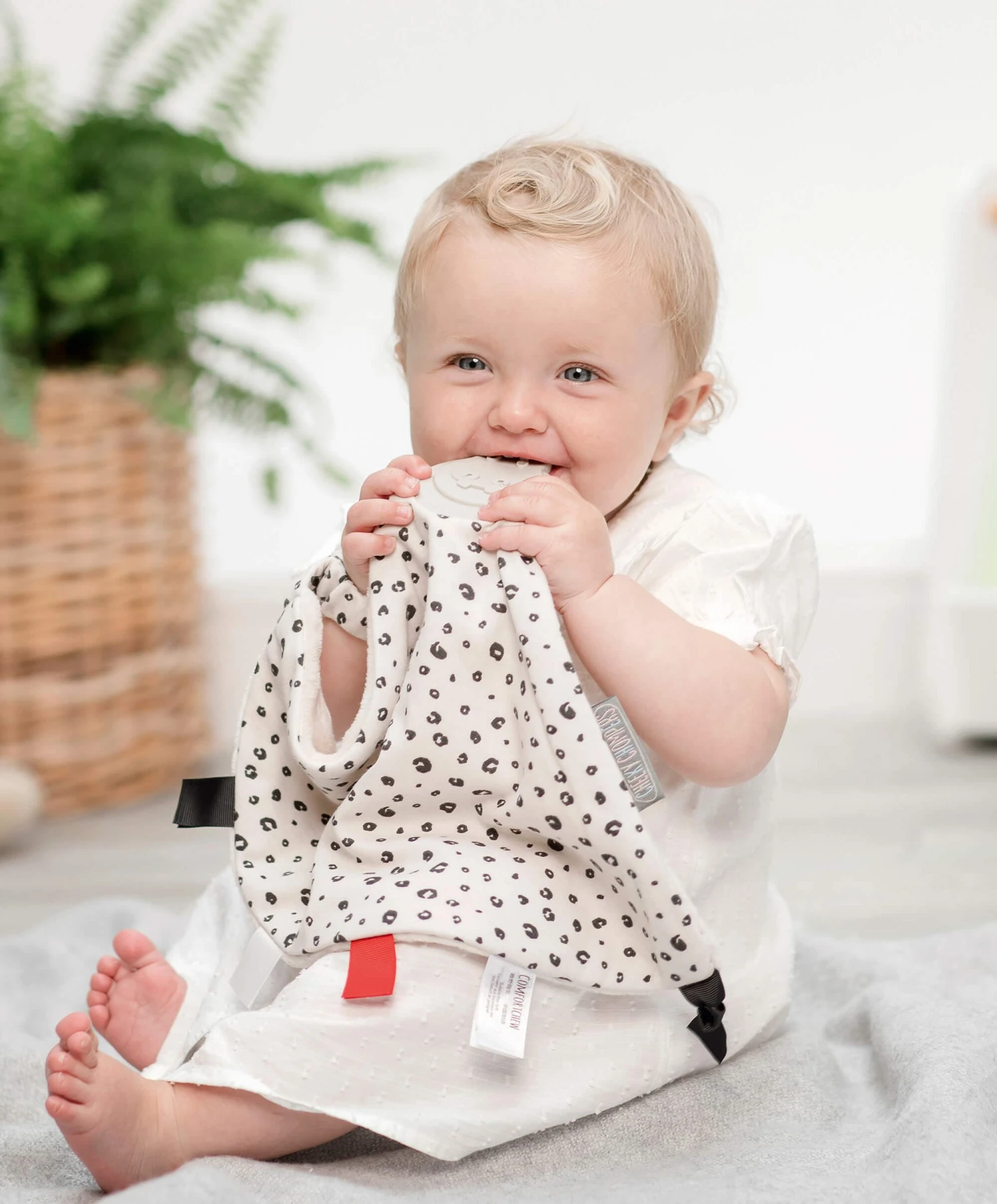 This clever comforter, the Comfortchew from Cheeky Chompers, is super soft and snuggly, with an attached teether. Everything you need to comfort and soothe your little one! The soft, textured teether gives a great ‘bite’, using an innovative, dimpled design to massage and soothe your baby’s tender gums and encourage new teeth to break through. With super-soft jersey cotton and cuddle fleece that’s delicate on young skin, the Comfortchew combines baby’s favourite essentials – comforter, teether, sensory tags, and the feels of their favourite teddy. Take it with you wherever you go – the handy strap attaches to the baby, cot, car seat, buggy and dummy. No more lost or dirty precious comforters!