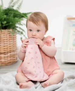This clever comforter, the Comfortchew from Cheeky Chompers, is super soft and snuggly, with an attached teether. Everything you need to comfort and soothe your little one! The soft, textured teether gives a great ‘bite’, using an innovative, dimpled design to massage and soothe your baby’s tender gums and encourage new teeth to break through. With super-soft jersey cotton and cuddle fleece that’s delicate on young skin, the Comfortchew combines baby’s favourite essentials – comforter, teether, sensory tags, and the feels of their favourite teddy. Take it with you wherever you go – the handy strap attaches to the baby, cot, car seat, buggy and dummy. No more lost or dirty precious comforters!