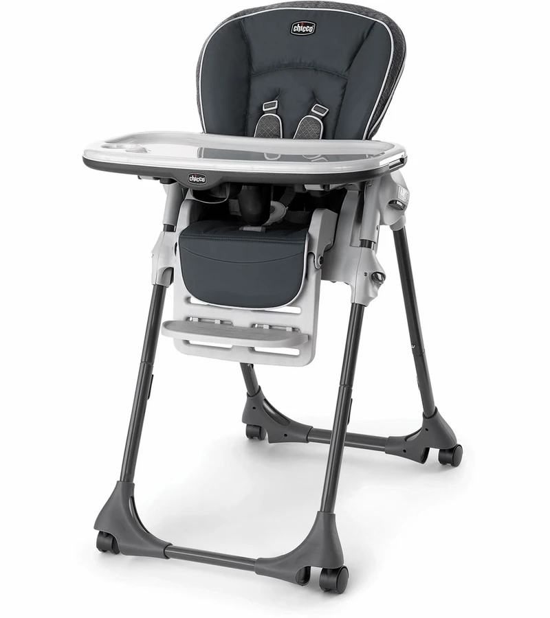 The convenient Polly® Highchair is packed with easy adjustability to comfortably accommodate growing children. A three-position reclining backrest with one-hand adjustment creates a comfortable space for younger babies who are still bottle feeding. Seven height positions and fold-away armrests make it easy to bring growing toddlers up to almost any table.