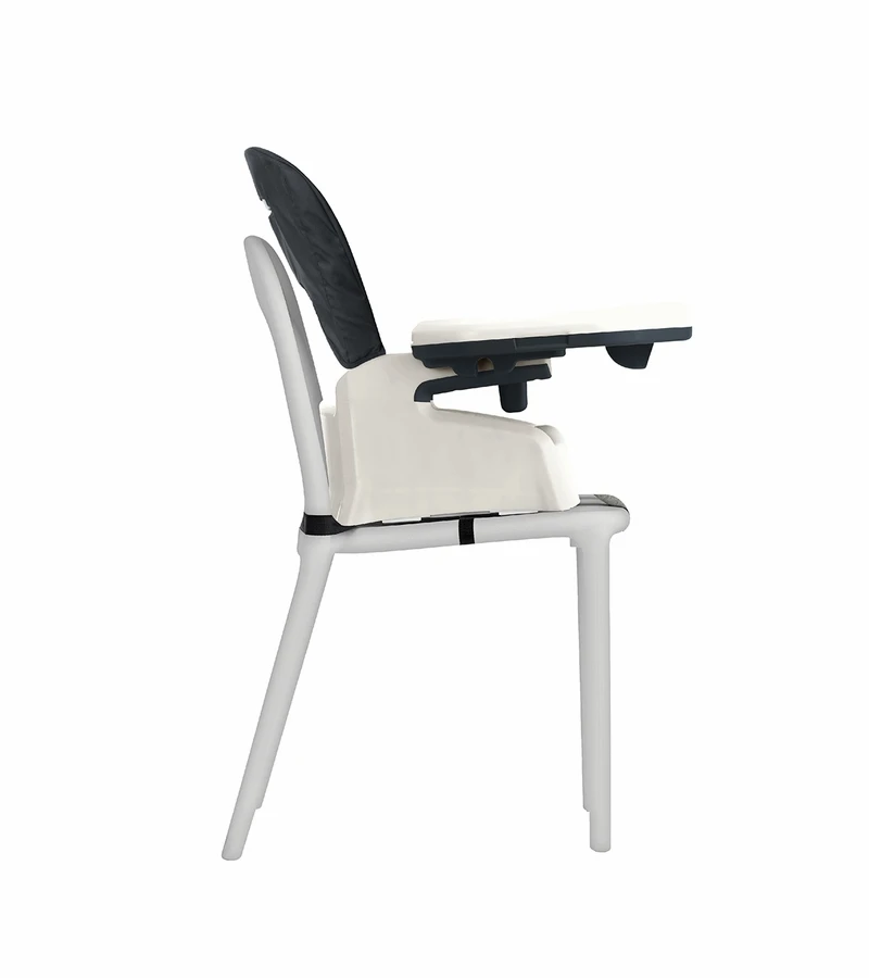 - Highchair seat easily detaches from frame to create booster and stool configurations