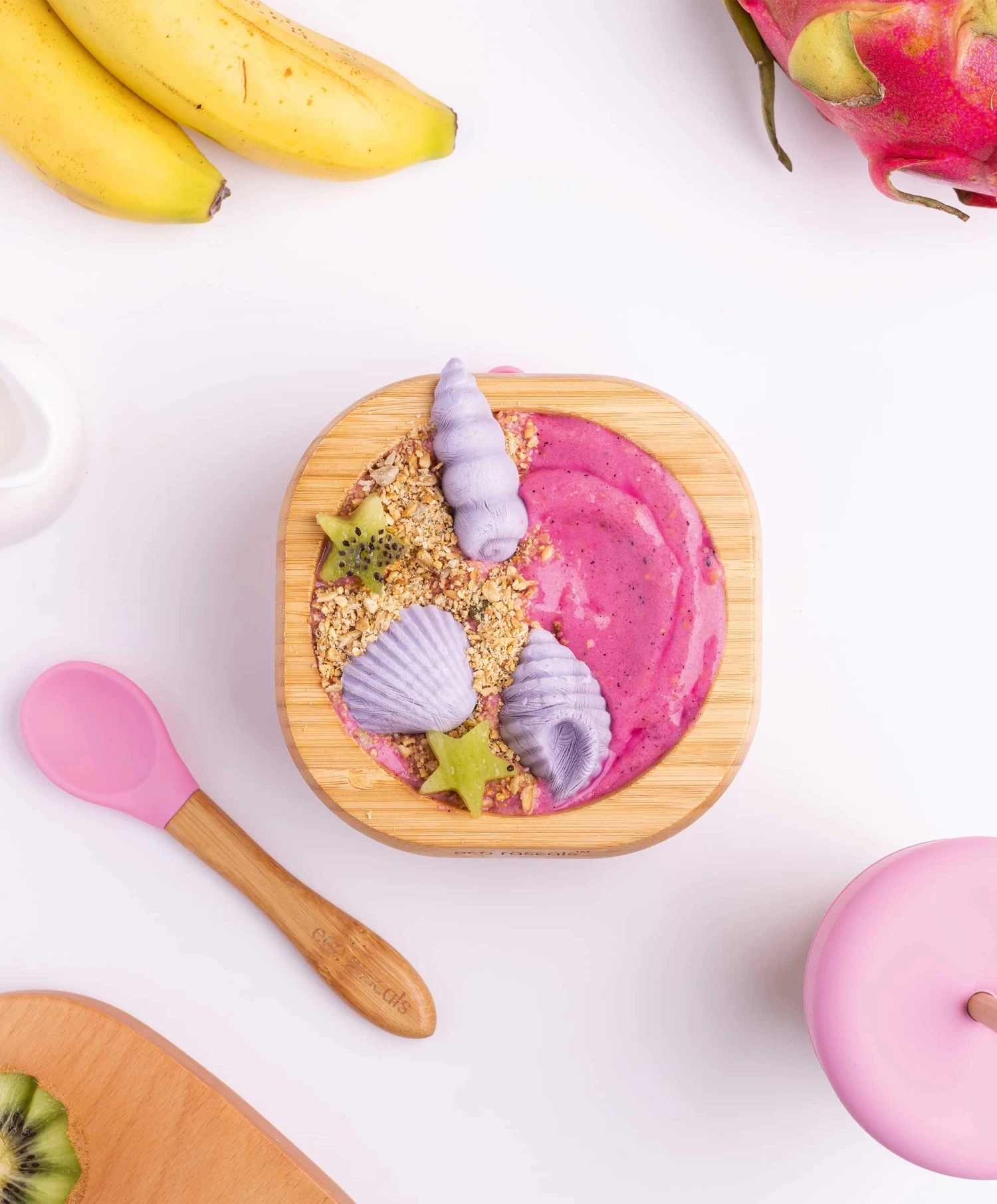 Eco Rascals’ bamboo bowl with silicone suction & spoon set in pink is made from sustainable materials like bamboo and silicone, this bamboo bowl provides a safe and non-toxic dining experience for children. With the added benefit of a strong suction base, it helps prevent spills and messes, making mealtime easier and more enjoyable for both parents and little ones.
