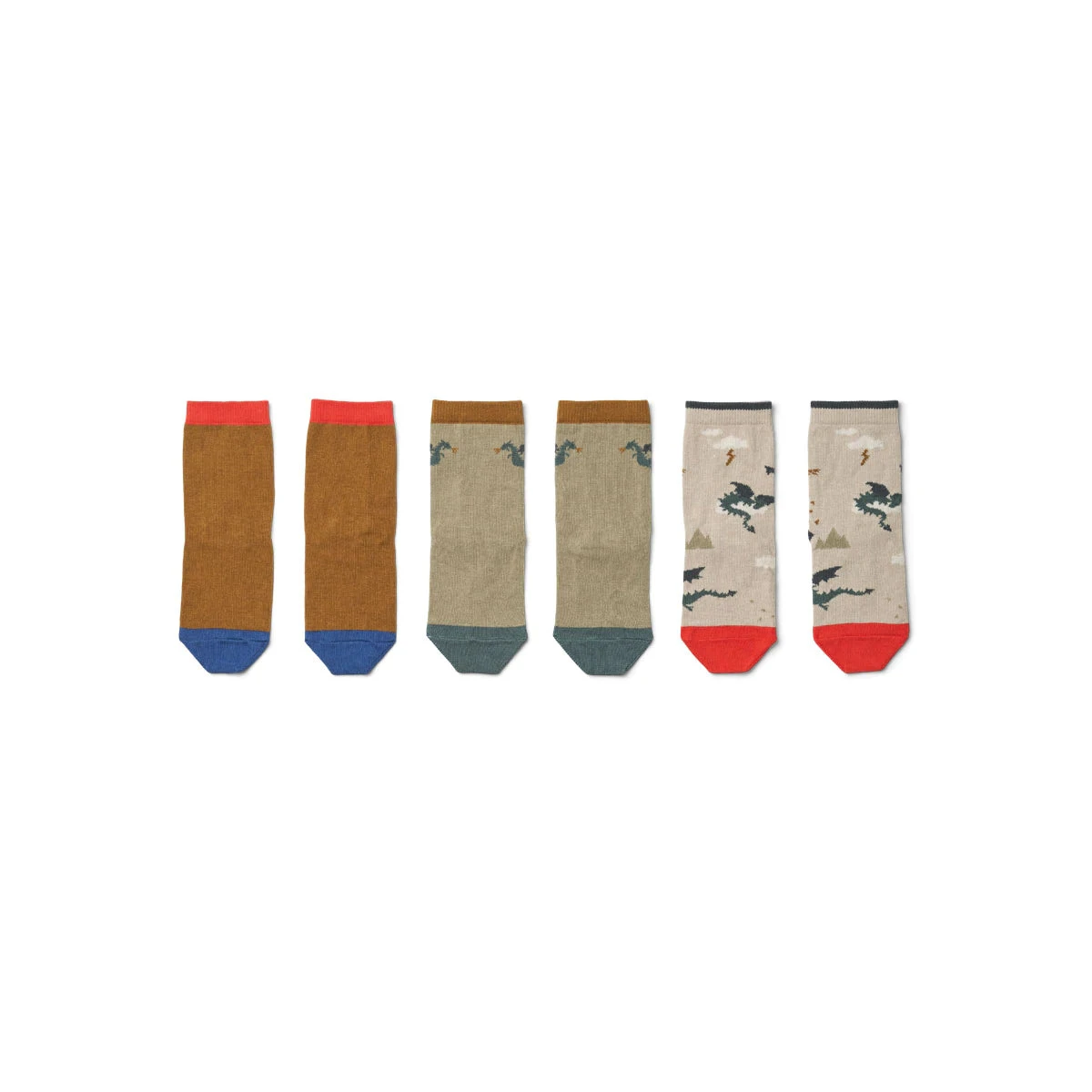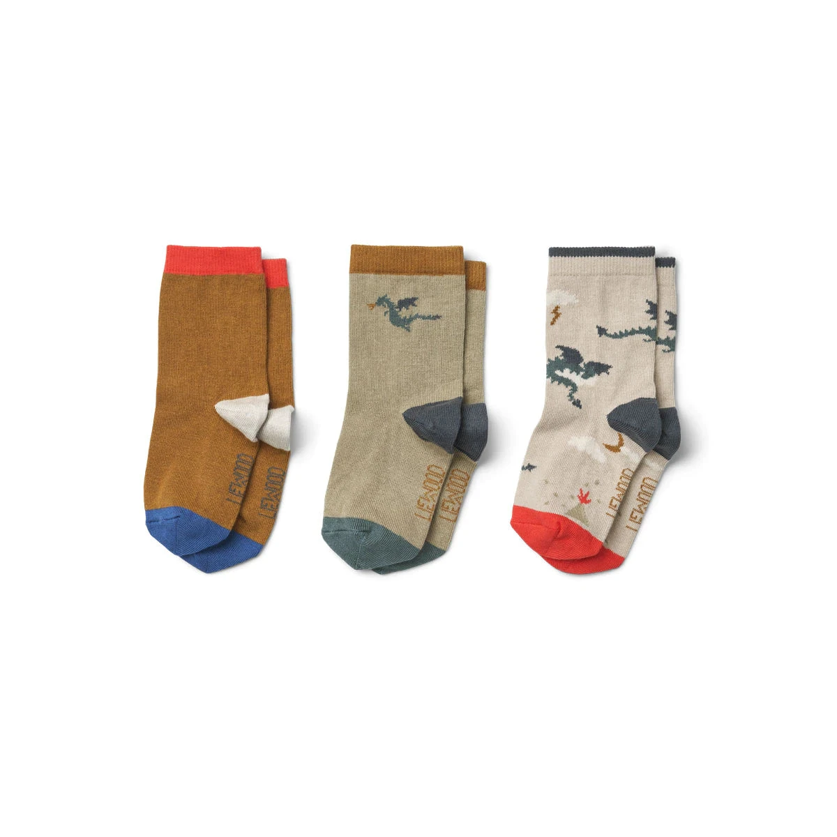 The Liewood Silas Socks in Little Dragon / Dark Sandy Mix are super soft and cute, the funky designs on the socks have lovely sweet dragons on them, hopefully make getting dressed a lot more fun. These Liewood Silas socks are elastic and very comfortable to wear.