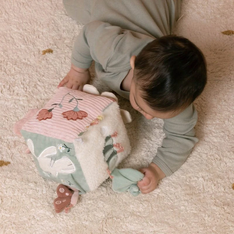 This super soft Little Dutch activity cube in the prettiest flowers and butterflies design, is an ideal first toy for your little learner.