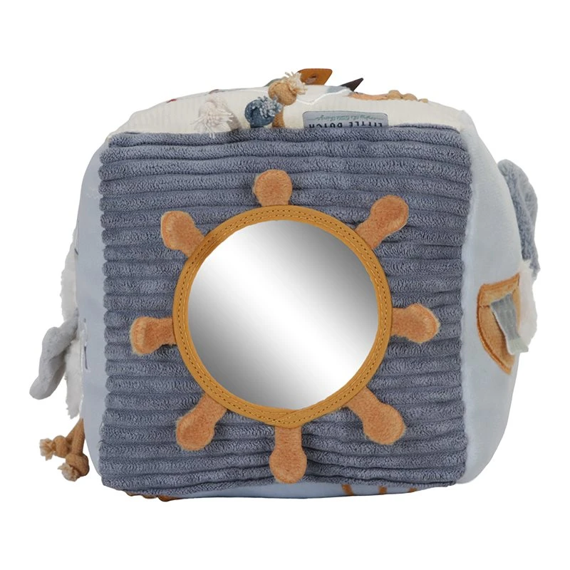This super soft Little Dutch activity cube in fun nautical themed Sailors Bay design, is an ideal first toy for your little learner.