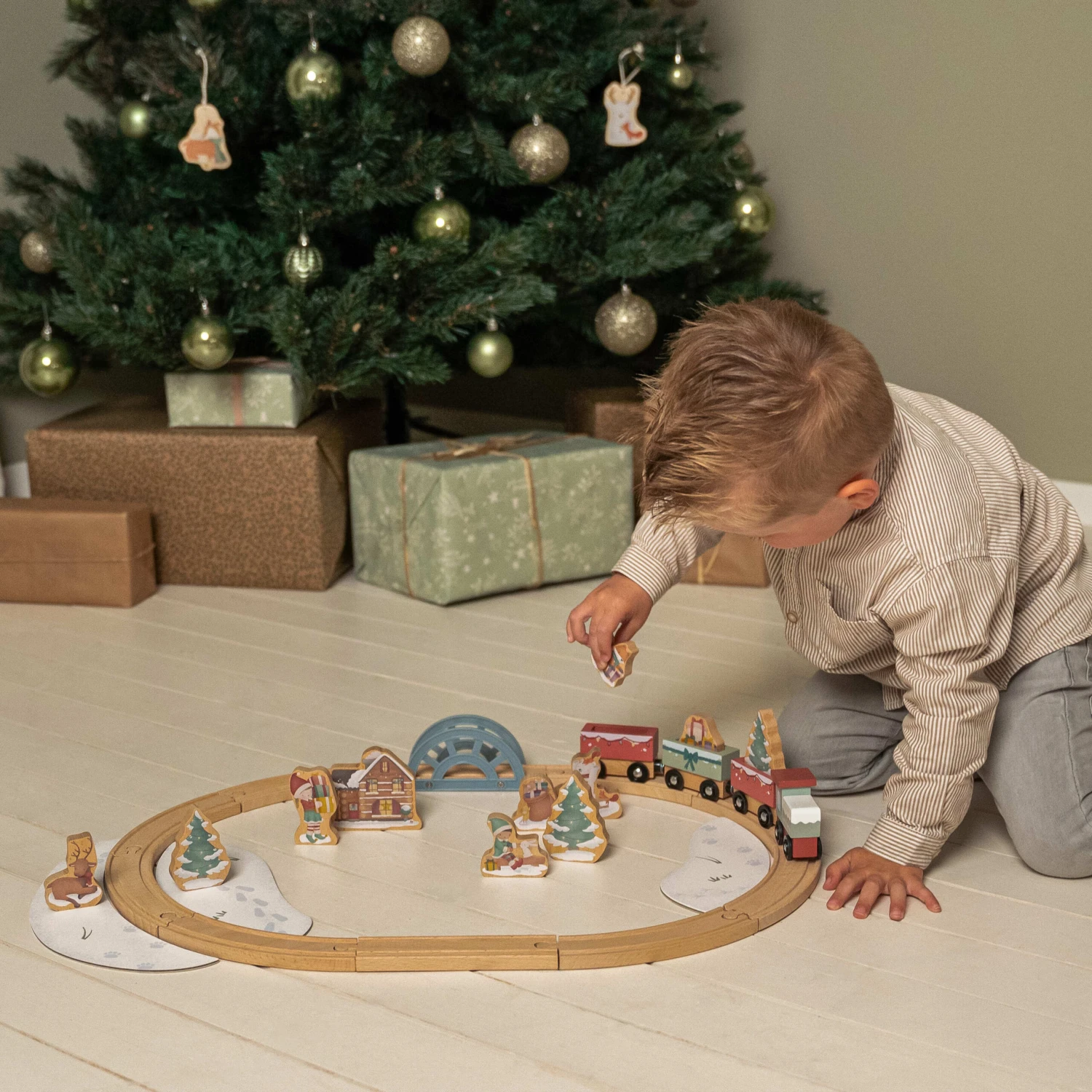 Get into the holiday spirit with the Little Dutch Christmas train set! This wooden train track features a locomotive, three wagons, and festive accessories like a house, presents, and a reindeer. Ideal for children aged 18 months and up, it’s perfect for crafting their own Christmas tales and sparking their creativity. A wonderful gift to place under the tree, this charming Christmas train set promises years of festive fun and imaginative play.