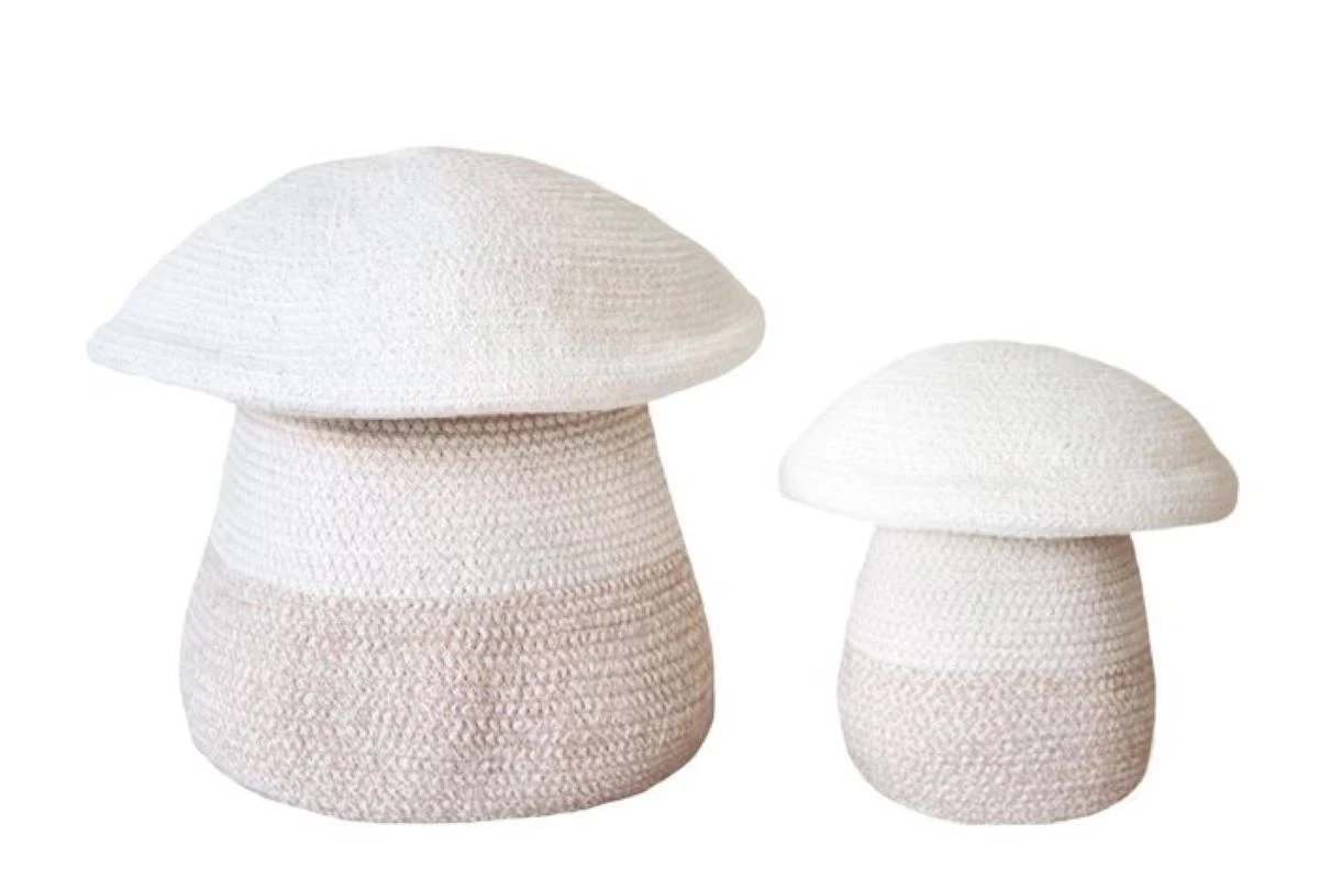 These 2-in-1 baskets can be used either together or separately. Handmade from natural, undyed cotton melange cords with contrasting linen-color stitching. You can combine with the smaller version – the Baby Mushroom Basket – for a real style statement!