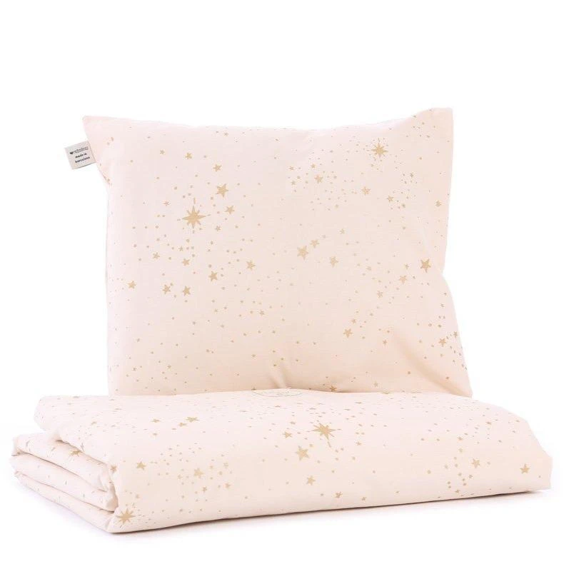 The Nobodinoz Himalaya Bed linen in gold stella/ dream pink is made from oh so soft organic cotton. Get ready for a good nights sleep in this neutral print that fits with almost any interior.