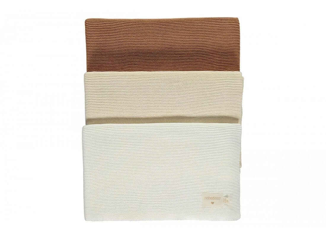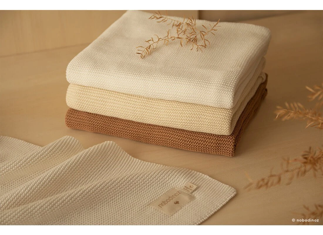 The Nobodinoz So Natural Knit Blanket is made with 100% organic cotton.