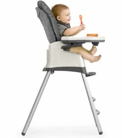 - Removable Tray Tray removes easily with one-hand, stores on chair’s back legs. Includes dishwasher-safe tray liner.