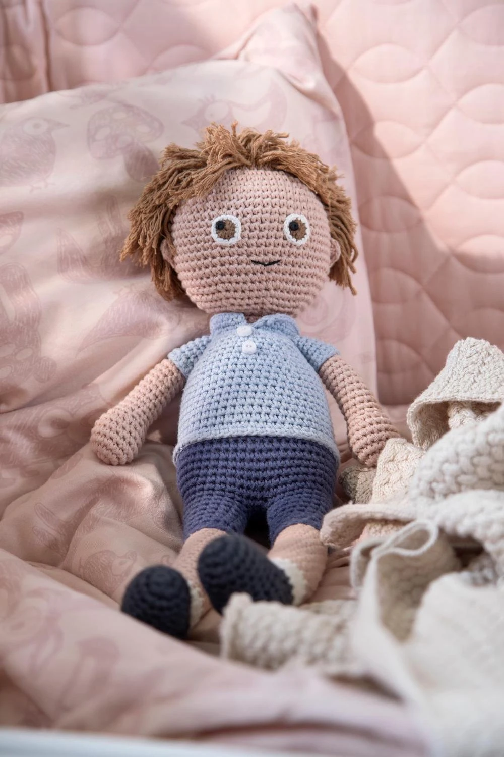 The crocheted doll has been designed in Denmark and is handmade, so each doll is unique with its own charm.