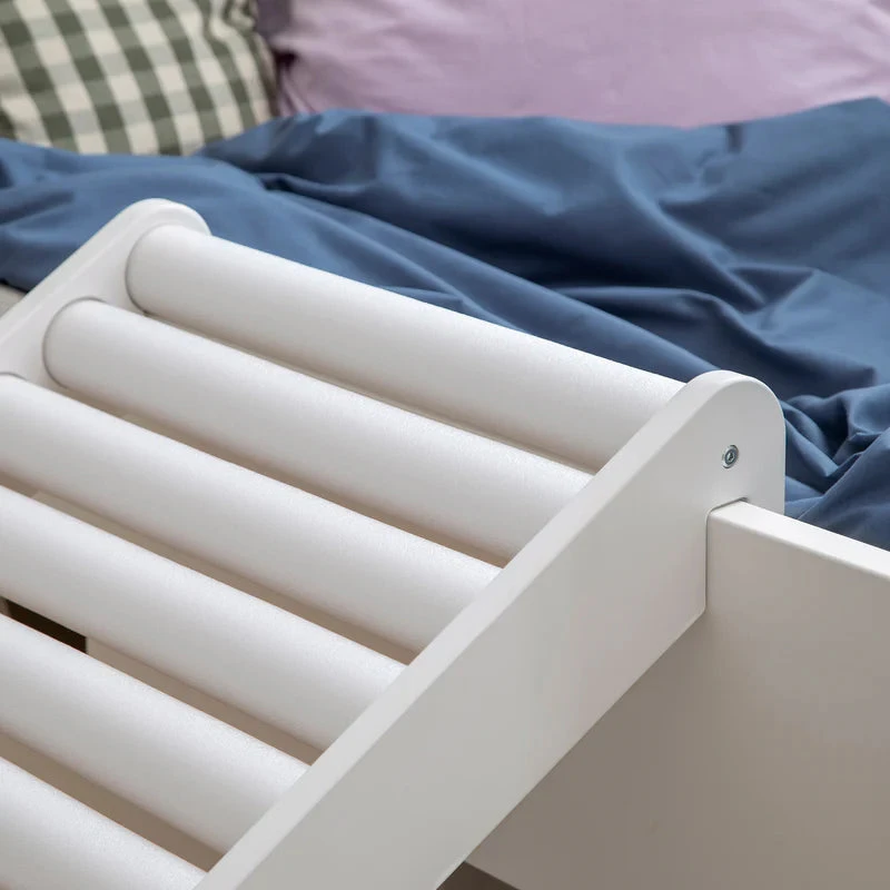 The flexible foam rollers are soft to slide down and easy to climb back up = a wonderful way to encourage little ones to go to bed with little stress.