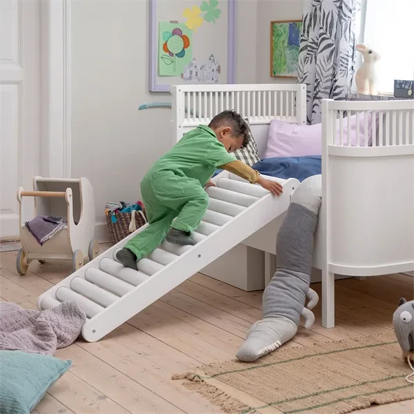 The Sebra Roller Slide has been cleverly designed to attach to the bestselling Sebra Baby and Junior Bed or as an add on to the Sebra Climbing Triangle.