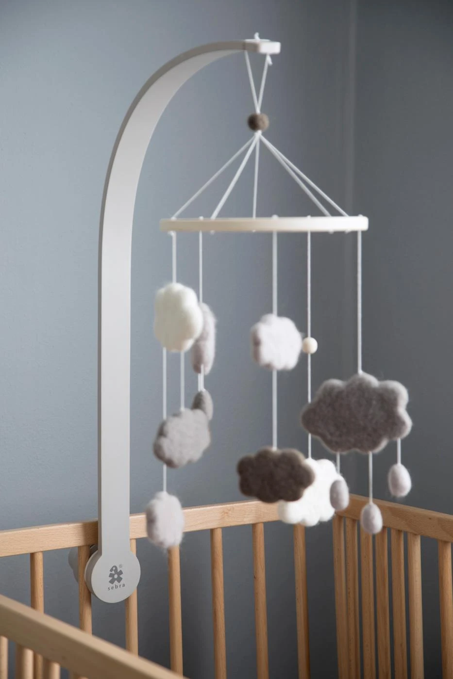 The super practical Sebra Mobile Holder in Elephant Grey is a wonderful stylish mobile holder, it can be easily mounted and secured between the bars of your little ones cot bed.