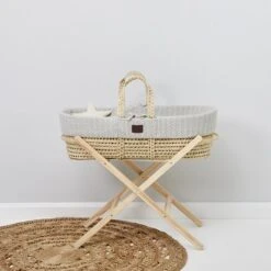 Little Green Sheep Moses Basket, Mattress And Stand Bundle – Dove