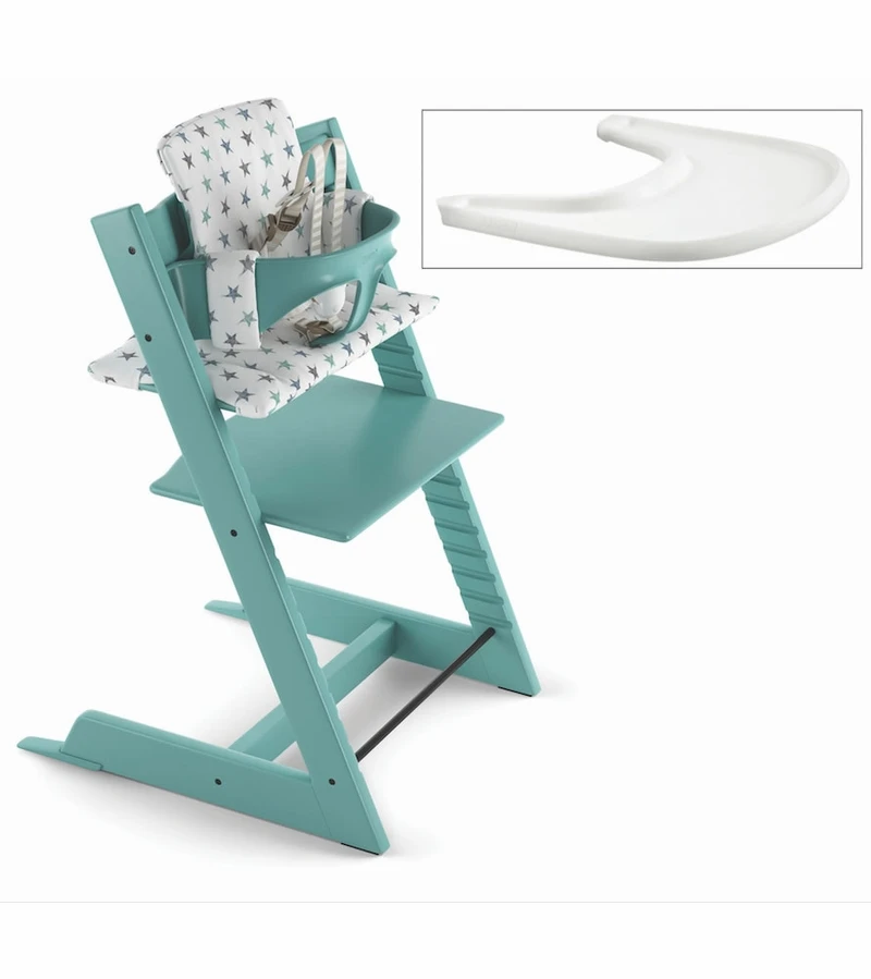 - Tripp Trapp? Baby Set (matches the chair) with 5-point harness and extended gliders