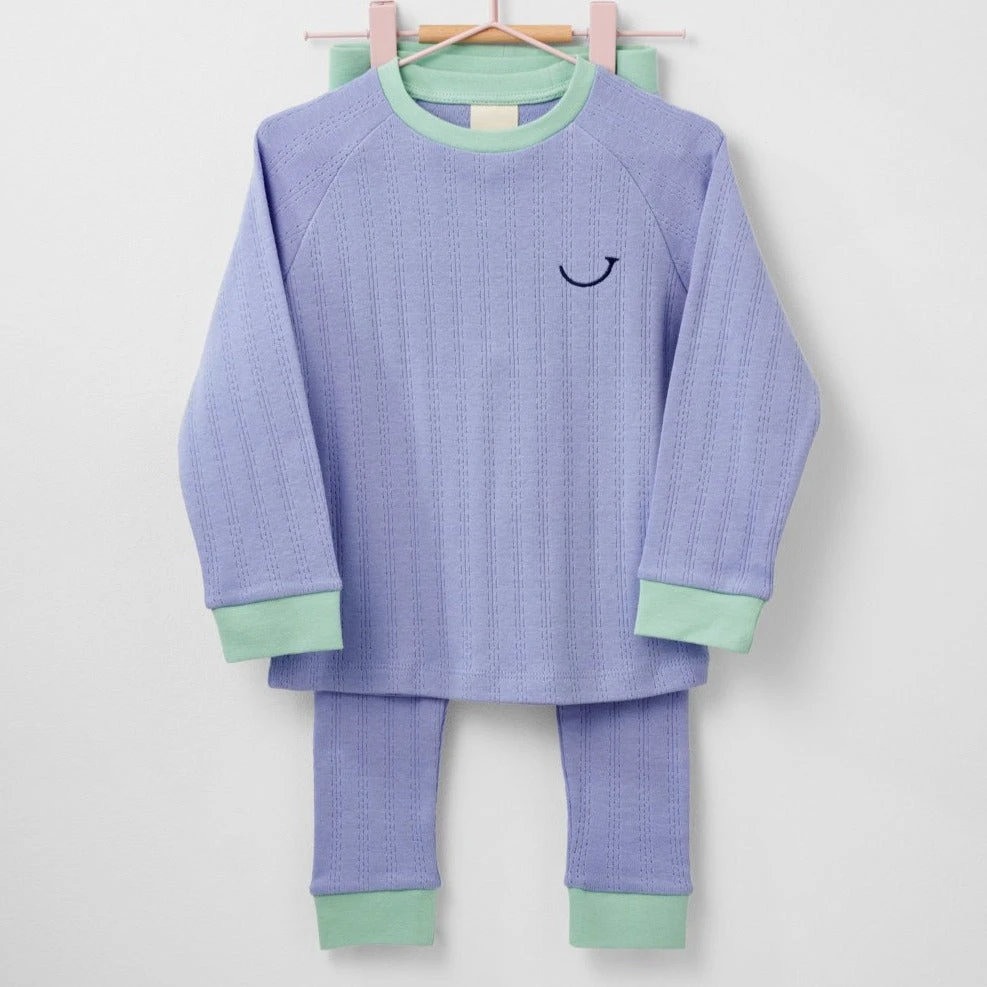 Super soft and with a little stretch these slim fit organic cotton mix top & bottoms, feature ribbed cuffs for added comfort and help lock in a little extra warmth.