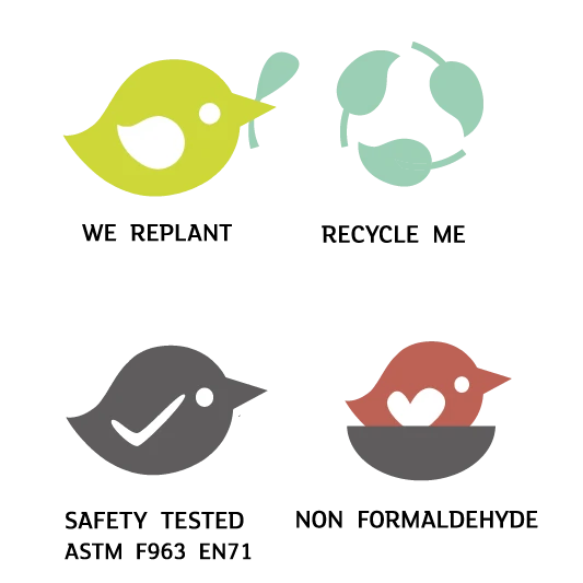 Made from sustainable rubberwood and responsibly sourced plywood, colored with soft non-toxic colors for a contemporary style.