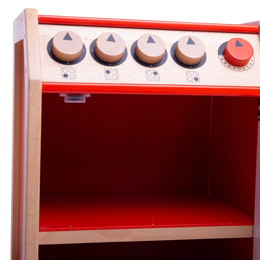 With clicking dials, hob detailing, an oven with a shelf, this play cooker is a realistic addition to any play kitchen.