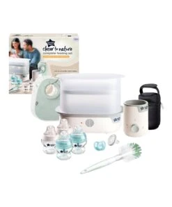 Includes: Tommee Tippee Complete Feeding Kit, Electric Steam Steriliser with Insulated Bottle Bag, Closer to Nature Baby Bottles and Easi-Warm Bottle Warmer, White