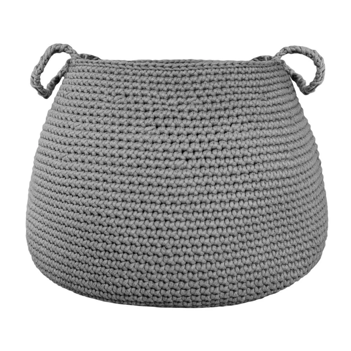 This carefully crafted basket was constructed by crocheting with a 100% cotton cord. Two handles on each side allow for easy carrying and transport.