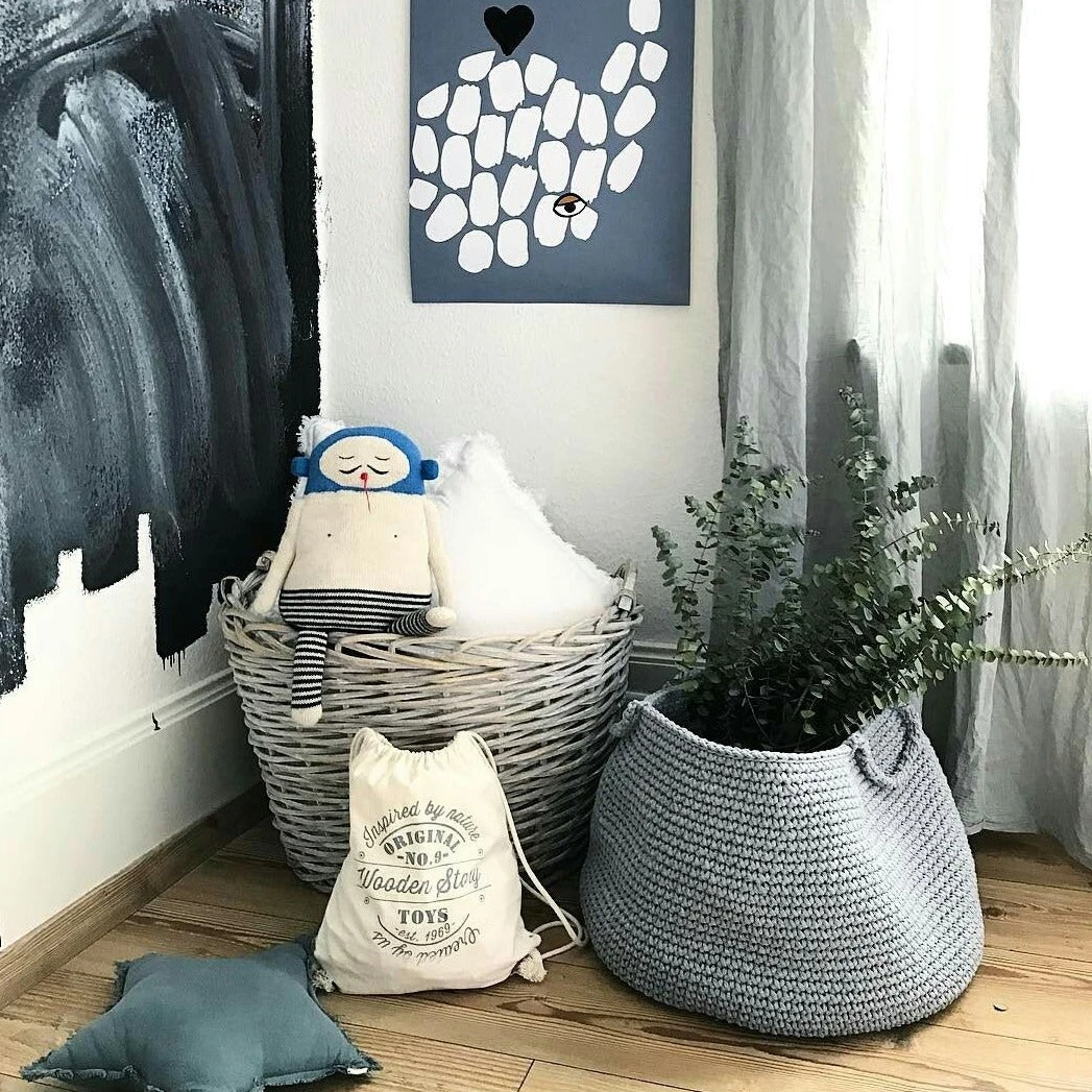 There’s nothing more useful and decorative for your nursery or child’s room than a handcrafted storage basket. When life gets cluttered, this basket is the perfect catch-all container for clothes, toys, stuffed animals, or extra linen. Natural beauty meets function for your space with this beautiful basket.