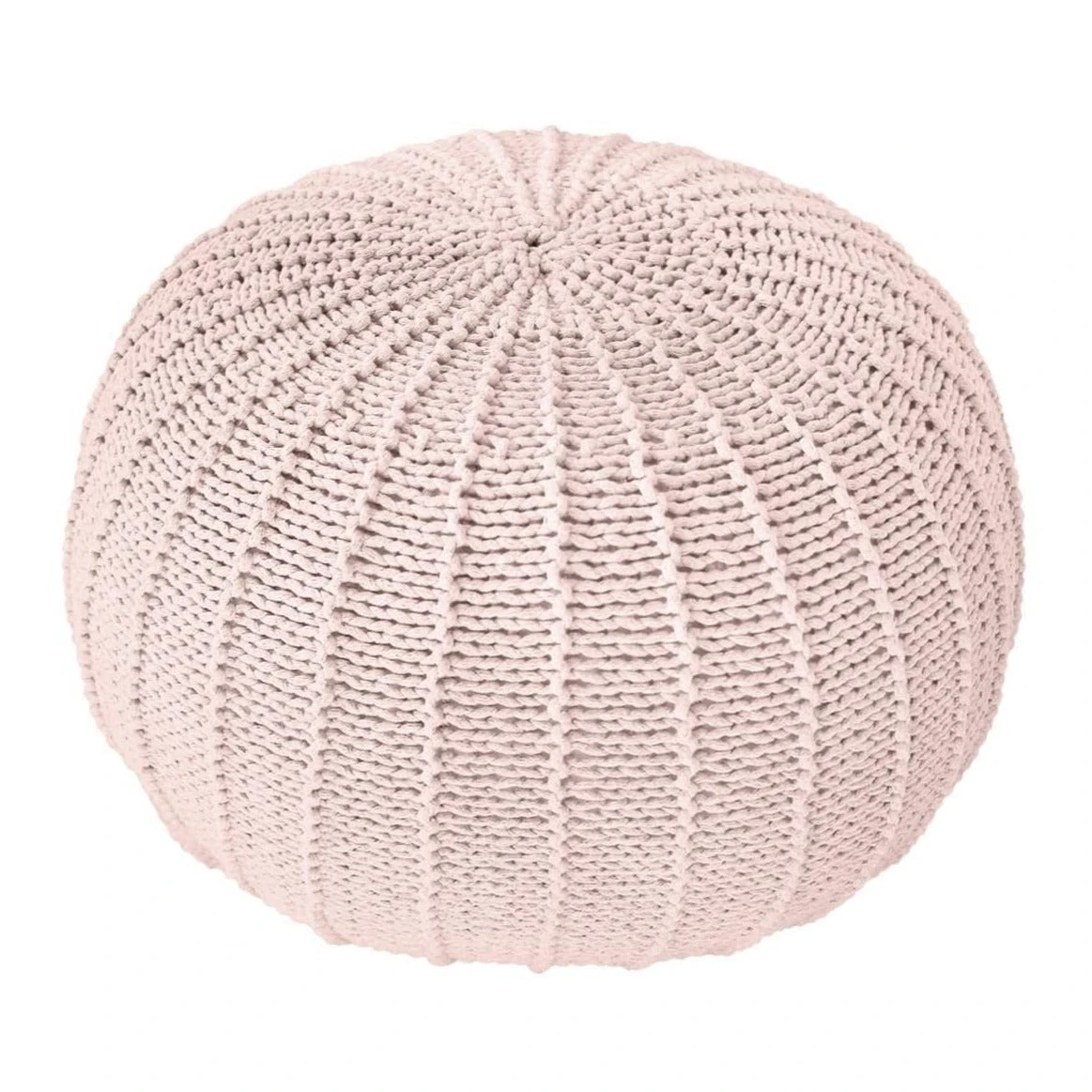 This medium-sized pouffe features 100% cotton cord that is hand-knitted carefully with love. On the inside, a polystyrene bag holds beans to give it sturdy structure and form.